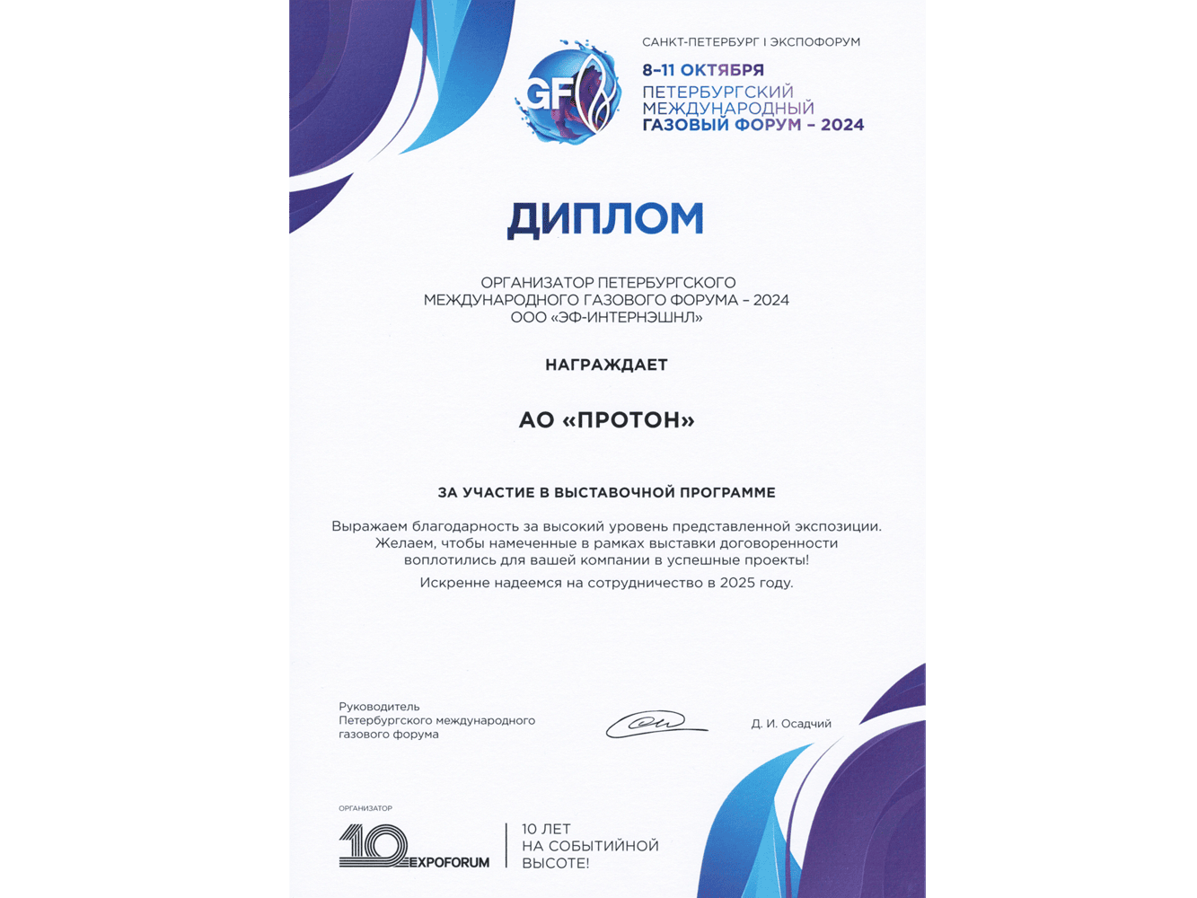 АО «Протон» приняло участие в Петербургском международном газовом форуме – 2024